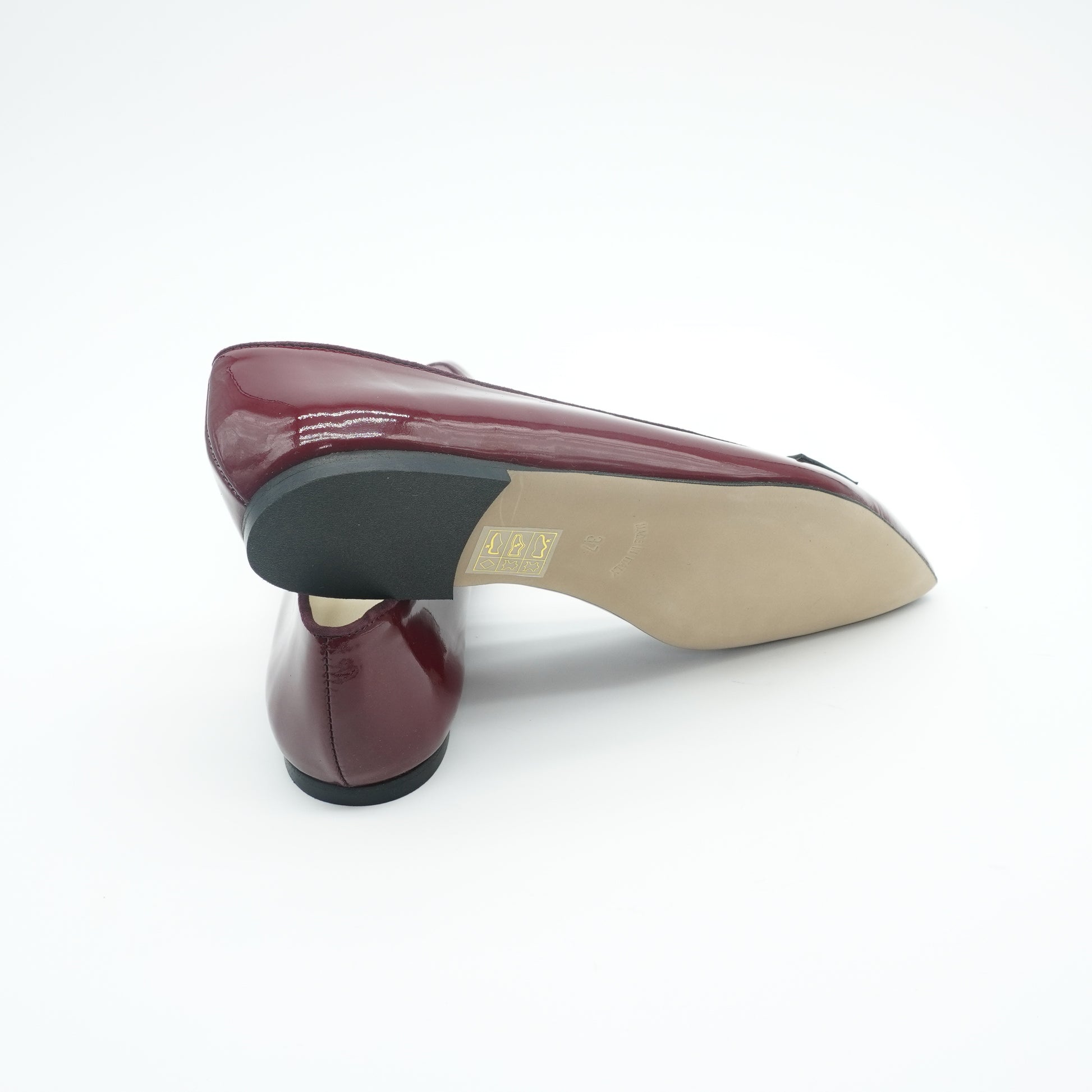 Der Pointy Loafer aus Bordeaux Lackleder verbindet elegante Herbstästhetik mit präziser Handwerkskunst. Seine spitz zulaufende Form verleiht eine stilvolle Silhouette, während das hochwertige Lackleder in sattem Bordeauxton für einen edlen Auftritt sorgt. Perfekt für anspruchsvolle Damen, die Komfort und zeitlose Eleganz bei kühleren Temperaturen schätzen.