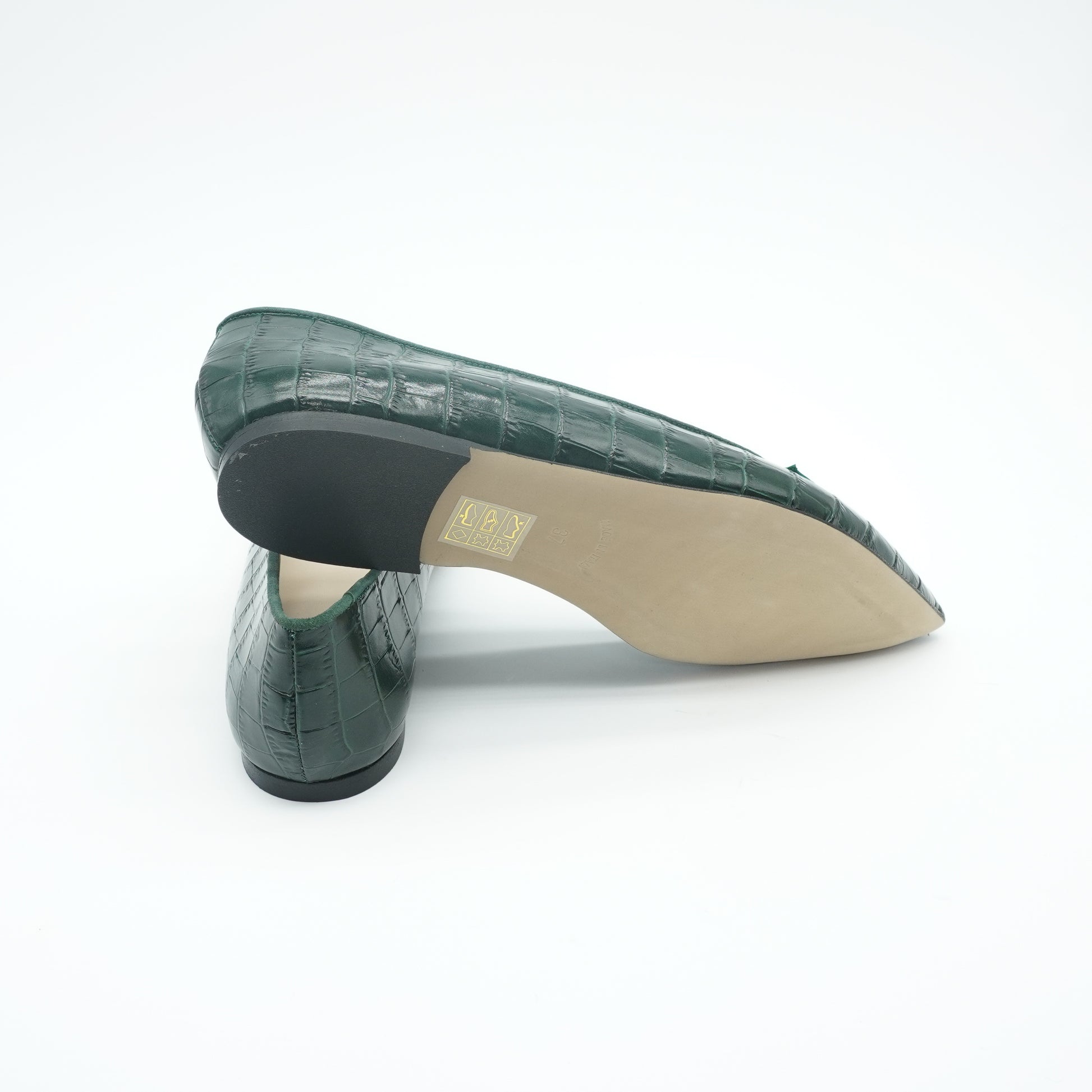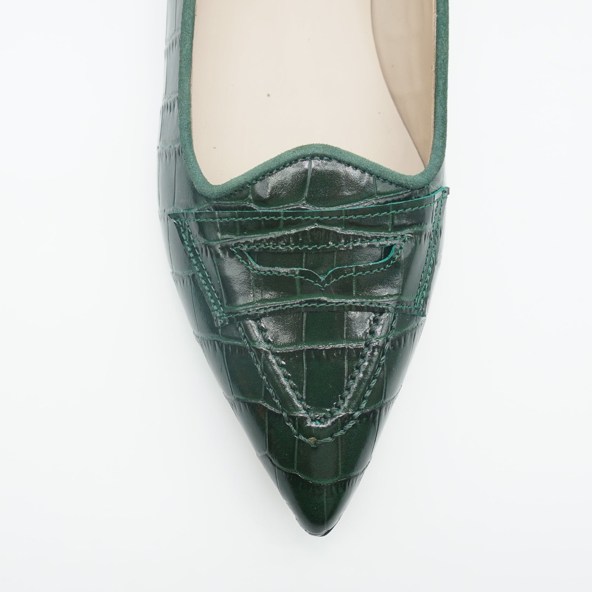Der Pointy Loafer in Croco-Optik Grün verbindet elegantes Design mit hochwertiger Verarbeitung. Die spitze Form verleiht dem Schuh eine moderne, stilbewusste Silhouette, während die Croco-Prägung dem Look eine edle Textur und Tiefe verleiht. Perfekt für die Herbstsaison, bietet dieser Loafer nicht nur optisch einen besonderen Akzent, sondern auch angenehmen Tragekomfort für lange Tage. Ein vielseitiger Damenschuh, der sowohl im Büro als auch in der Freizeit überzeugt.