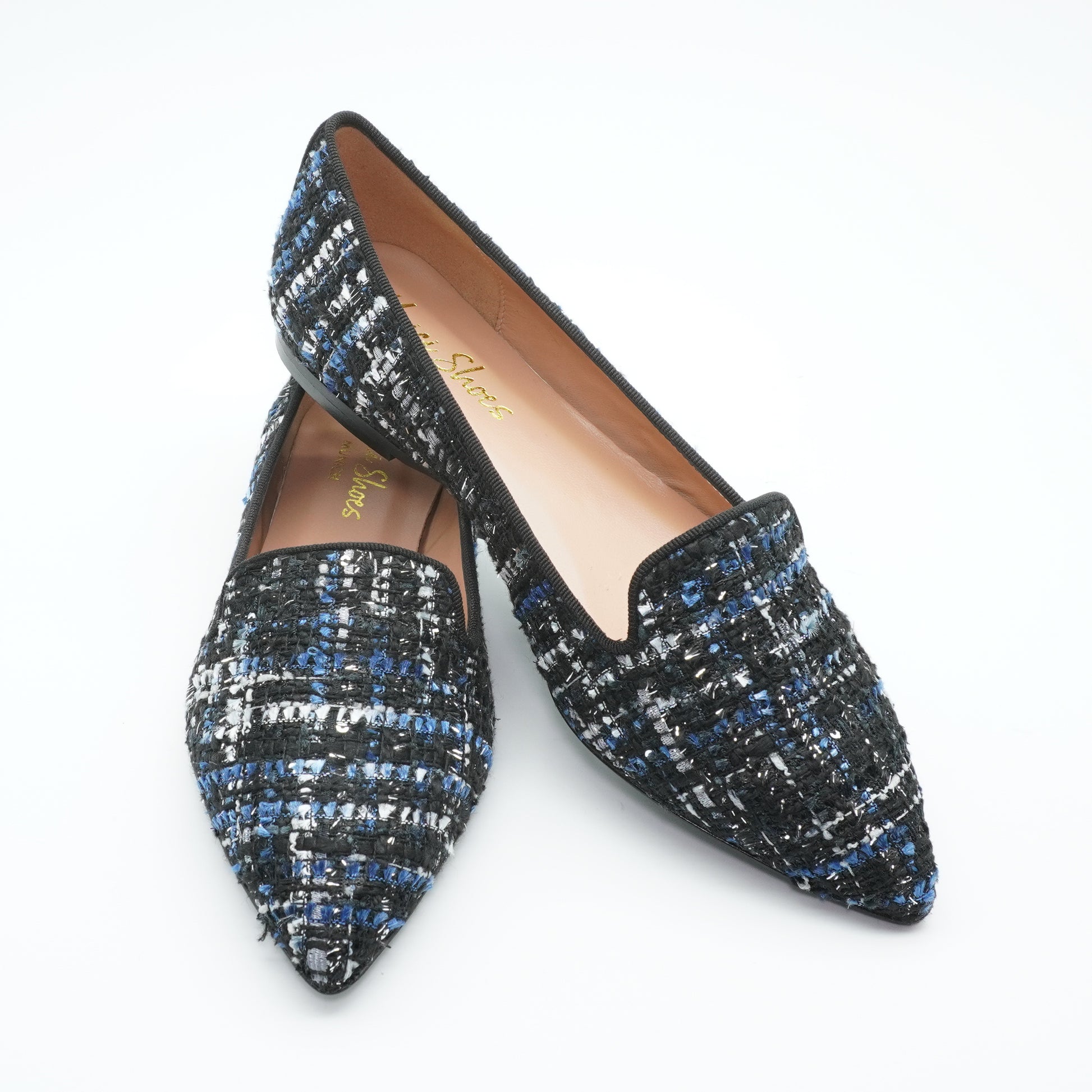 Pointy Loafer Bouclé Schwarz Blau