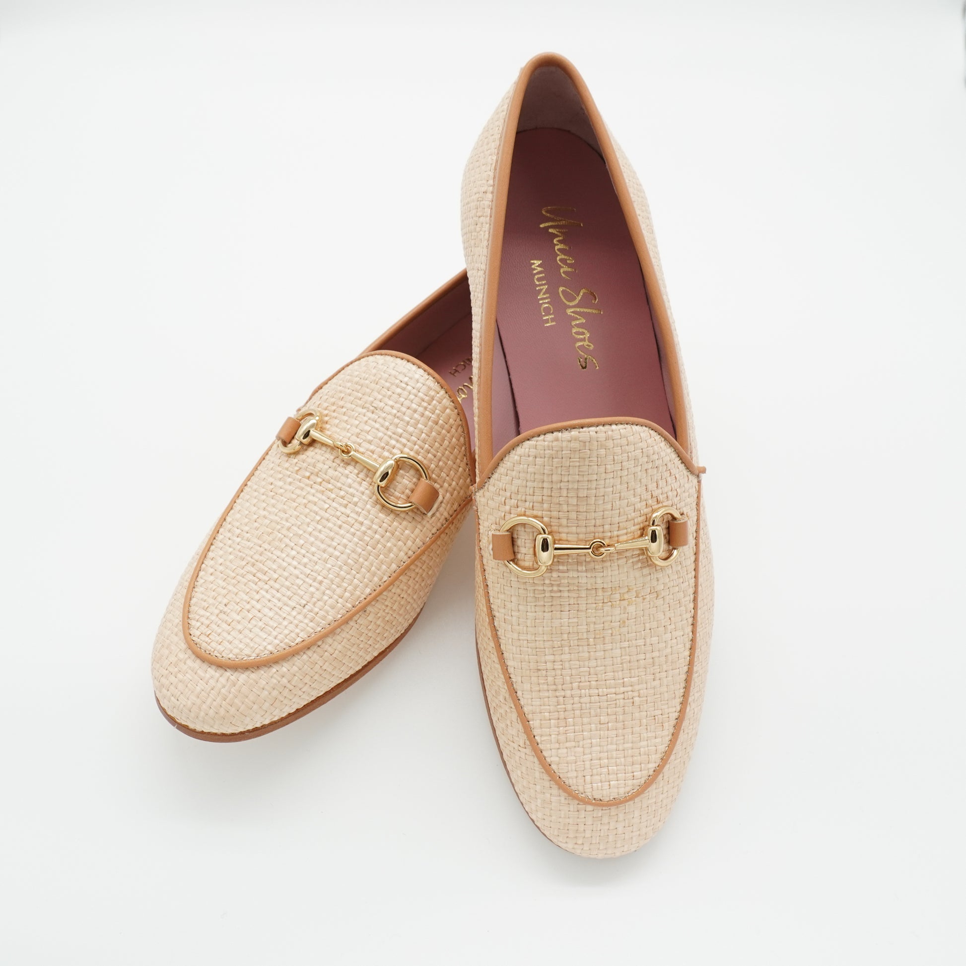 Erlebe einen luxuriösen Look und ein Höchstmaß an Komfort mit unserem Horsebit Loafer Raffia. Aus hellem Bast und mit edlem Trensendetails in gold elegant gestaltet, passt der Loafer perfekt sowohl zur Jeans als auch zu einem elegantem Outfit.